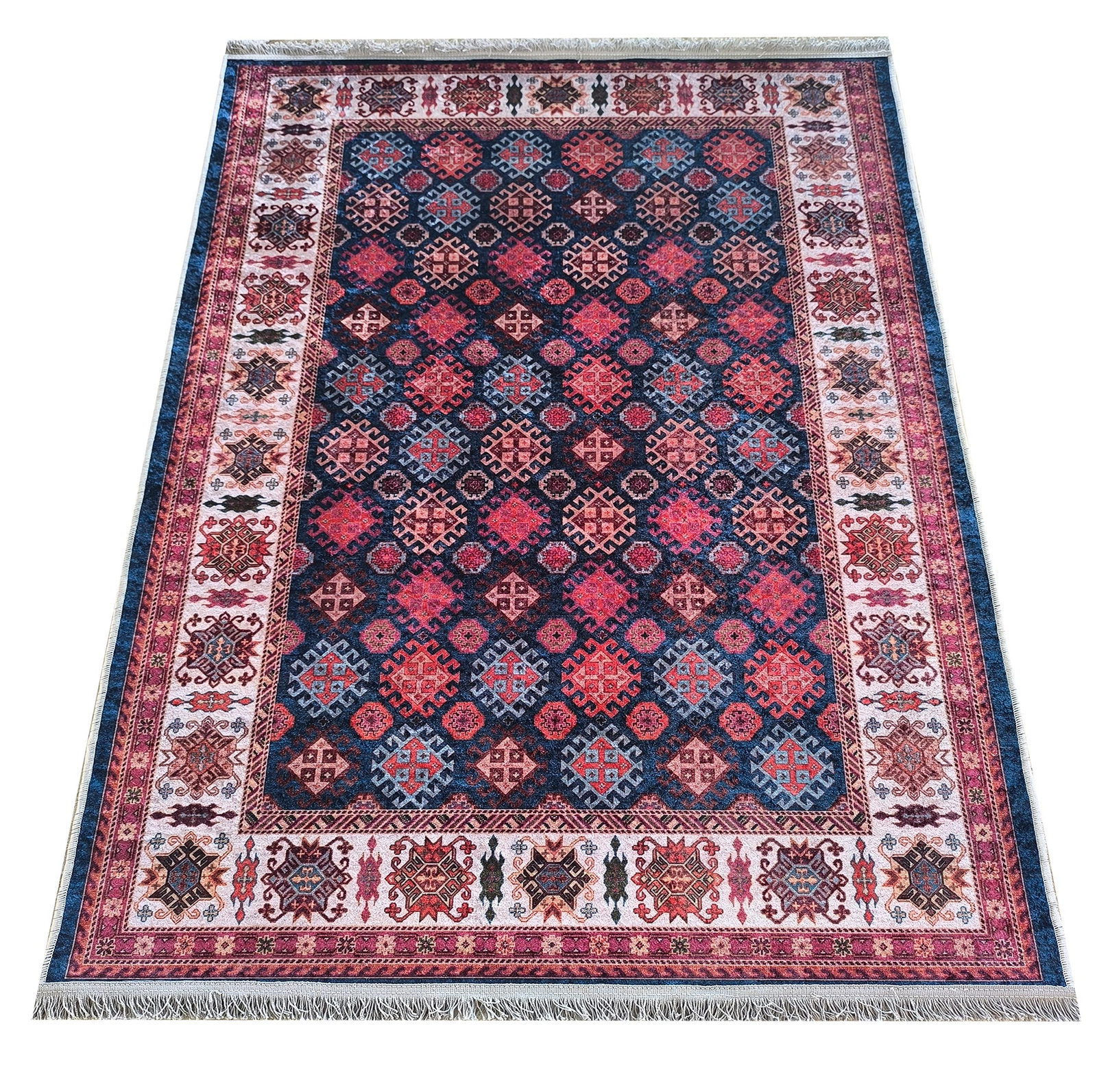 Oferowany przez nasz sklep internetowy, nieelektryzujący się dywan ze wzorem to produkt, który jest dostępny w kilku rozmiarach do wyboru, w bardzo atrakcyjnej cenie. Wyrób o grubości +/- 5 mm to modny dywan prostokątny ze starannym obszyciem jego brzegów i z frędzlami.  Wykonany jest z poliestru, który jest wytrzymały i odporny na uszkodzenia mechaniczne, zagniecenia czy ślady po meblach. Poliester to także materiał antybakteryjny i antyalergiczny, nie gromadzi kurzu, roztoczy i nie pleśnieje.