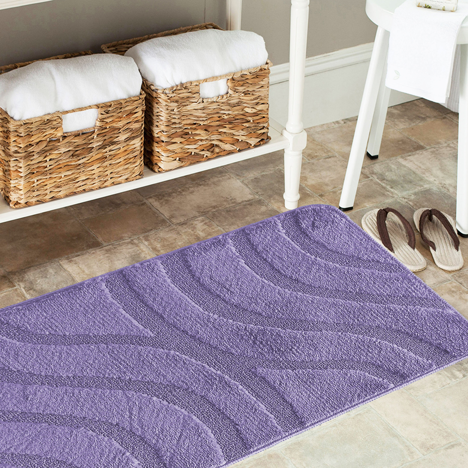 Wysokiej jakości komplet łazienkowy z wycięciem pod toaletę Montenegro Fale - Ciemna Lilia ma bardzo mocne, zwarte i sprężyste runo o wysokości +/- 10 mm, które wykonane jest w 100% z włókien polipropylenowych. Ten elegancki i wytrzymały komplet łazienkowy ma modny wzór w odcieniach liliowym.