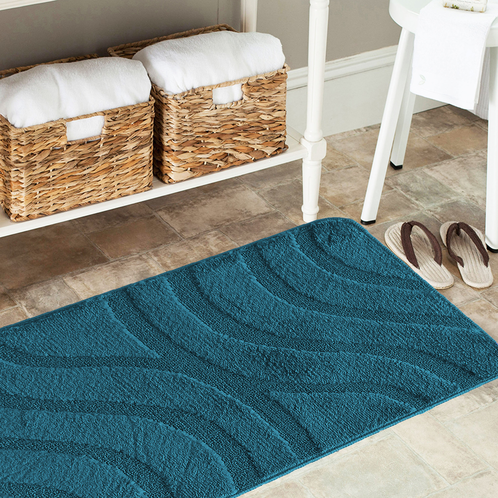 Ten modny zestaw łazienkowy jest odporny na deformację i blaknięcie kolorów jego runa. To bardzo oryginalny i funkcjonalny zestaw dywaników łazienkowych, posiadający jednocześnie świetne właściwości izolujące od zimnej podłogi. Dodatkowo zabezpiecza on jej powierzchnię przed uszkodzeniem.