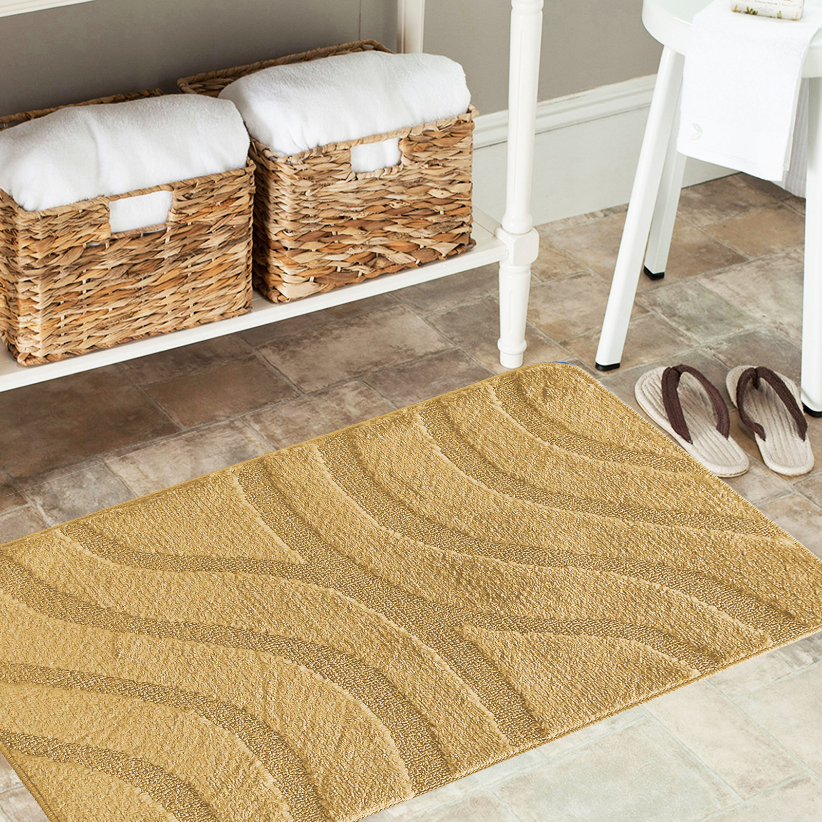 Ten modny zestaw łazienkowy jest odporny na deformację i blaknięcie kolorów jego runa. To bardzo oryginalny i funkcjonalny zestaw dywaników łazienkowych, posiadający jednocześnie świetne właściwości izolujące od zimnej podłogi. Dodatkowo zabezpiecza on jej powierzchnię przed uszkodzeniem.