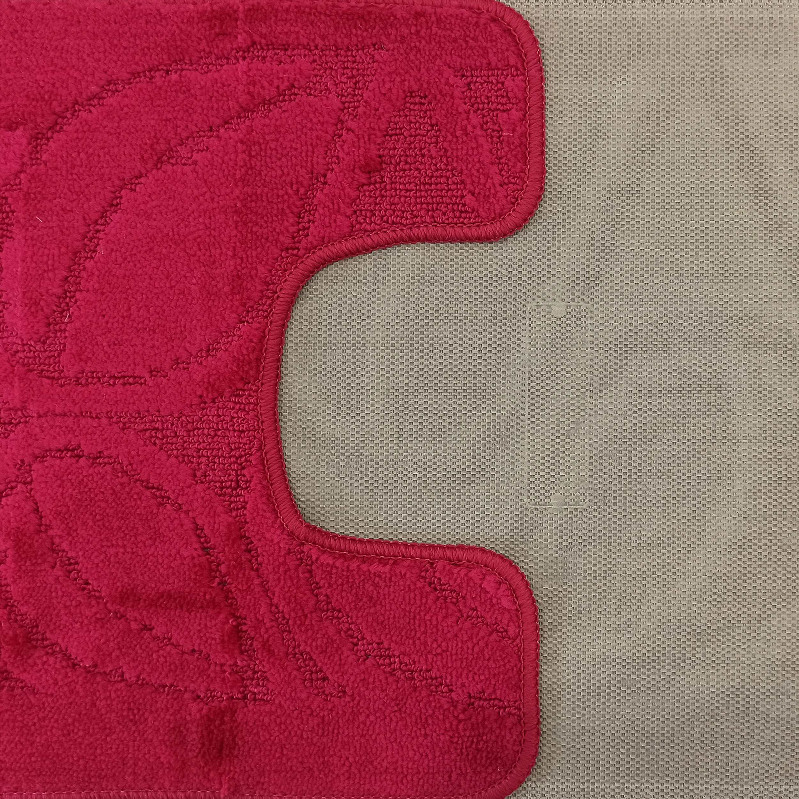 Wysokiej jakości komplet łazienkowy z wycięciem pod toaletę Montenegro Natura- malinowy ma bardzo mocne, zwarte i sprężyste runo o wysokości +/- 10 mm, które wykonane jest w 100% z włókien polipropylenowych. Ten elegancki i wytrzymały komplet łazienkowy ma naturalny wzór w odcieniach czerwieni.